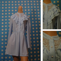 Light Blue Mini Dress With Chiffon Sleeves And Laces